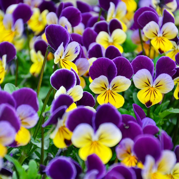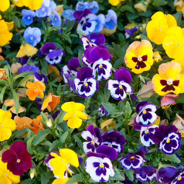 Pansies tolerate temperatures well below freezing and bounce back after a light frost. Perfect for containers, borders, and early bed refreshes. The color options range from yellow, purple, lavender, white, pink, maroon, and variegated, varies the combine the colors.